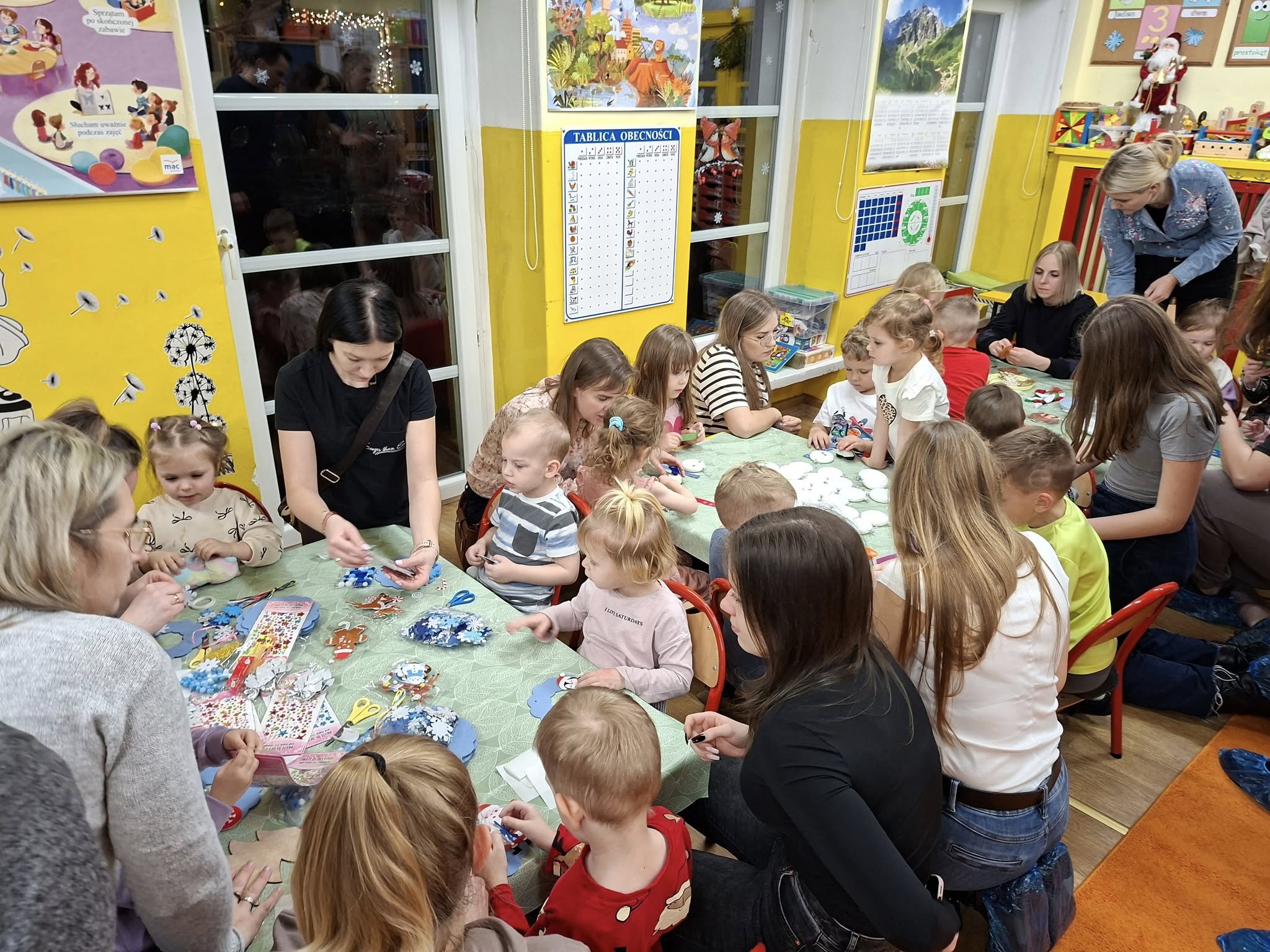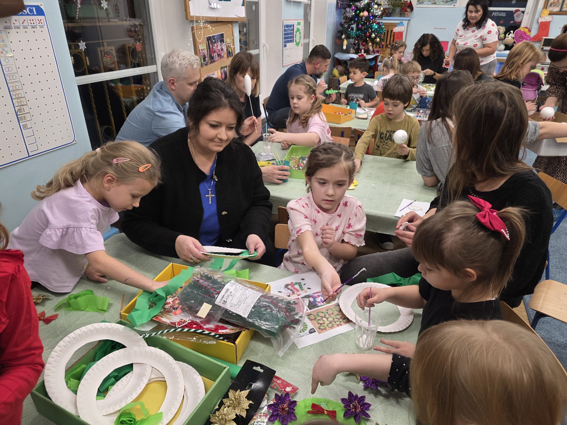 W grudniu w naszym przedszkolu zapachniało świerkiem i wspólną radością. Za nami wyjątkowe warsztaty bożonarodzeniowe, które wprowadziły dzieci i ich rodziców w przepiękny, świąteczny nastrój. Grudniowe popołudnia w naszym przedszkolu zamieniły się w małe pracownie Świętego Mikołaja. Sale przedszkolne, które na co dzień stanowią miejsce do nauki i zabawy, tym razem stały się doskonałą przestrzenią do twórczego działania i tworzenia ozdób bożonarodzeniowych. Głównym celem warsztatów, było nie tylko wykonanie świątecznych wieńców, bombek, choinek, ale przede wszystkim wspólne spędzenie czasu. W dzisiejszym świecie, pełnym pośpiechu i codziennych obowiązków, takie chwile z najbliższymi są bezcenne. Widok rodziców pomagających swoim dzieciom w malowaniu bombek, czy ozdabianiu stroików, był niezwykle wzruszający. Warsztaty plastyczne to dla przedszkolaków wspaniały czas na trening motoryki małej, okazja do rozwijania wyobraźni, a przede wszystkim budowanie więzi i współpracy w grupie. Serdecznie dziękujemy wszystkim Rodzicom za tak liczne przybycie, zaangażowanie, rozmowy i każdą chwilę uśmiechu