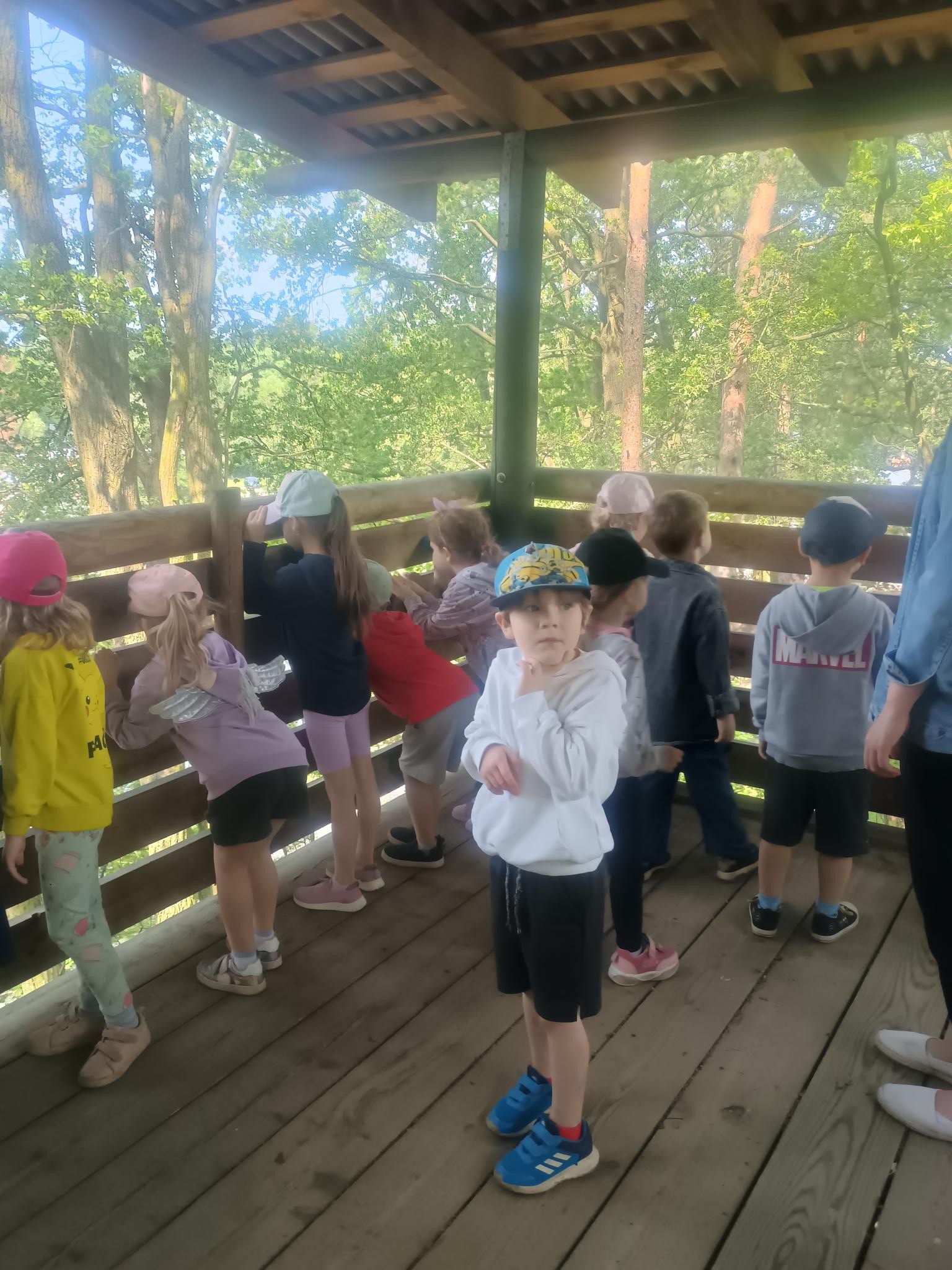 Prezentem na Dzień Dziecka dla naszych przedszkolaków była wycieczka do Krainy Dzikiej Kaczki. Pojechaliśmy autokarem, ciekawi, co czeka nas na miejscu. Biedronki wzięły udział w warsztatach Futerko czy piórko - Biedronki wzięły udział w wyjątkowych warsztatach przyrodniczych pod hasłem „Futerko i Piórko”. Dzieci miały okazję z bliska poznać różne gatunki zwierząt – przepiórki, króliki i sowy. Z ogromnym zainteresowaniem obserwowały ich zachowanie, karmiły je oraz dowiadywały się wielu ciekawostek na temat ich życia i zwyczajów. Podczas zajęć dzieci poznały budowę piór oraz różnice między piórami różnych gatunków ptaków. Po warsztatach przedszkolaki udały się na spacer po lesie, gdzie poznawały rośliny jadalne oraz uczyły się rozpoznawać różne gatunki drzew. W tym samym czasie Motylki poznawały strukturę lasu, poznawały wybrane gatunki ptaków i zwierząt i ich zwyczaje. Odwiedziły też czatownię – specjalne miejsce. Natomiast nasze najstarsze przedszkolaki Żabki i Pszczółki wzięły udział w Survivalu - szkole przetrwania w lesie. Jak ugotować herbatkę Baby Jagi? Jak rozpalić ogień? Jak przetrwać noc w lesie i zbudować schronienie? Na te i inne pytania odpowiadali specjaliści z zakresu survivalu . Podczas warsztatów survivalowych dzieci same próbowały rozpalić ogień, gotowały herbatkę Baby Jagi z leśnych ziół, a także uczyły się, jak zbudować schronienie w lesie i co zrobić, by bezpiecznie przetrwać noc w dzikim terenie. W trakcie długiego, aktywnego spaceru przez kładki, zarośla i mokradła, mali traperzy poznawali jadalne i trujące rośliny, uczyli się zasad pierwszej pomocy oraz zachowań w sytuacjach zagrożenia. To była prawdziwa przygoda– pełna emocji, ruchu i praktycznej wiedzy.